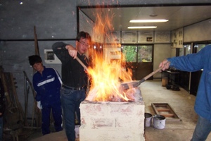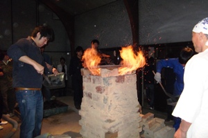 10月13,14日に備北丘陵公園で刀匠久保井重太郎氏指導によるたたら製鉄の体験教室が開かれました. 本研究室からも学生8名,教員1名が参加しました.